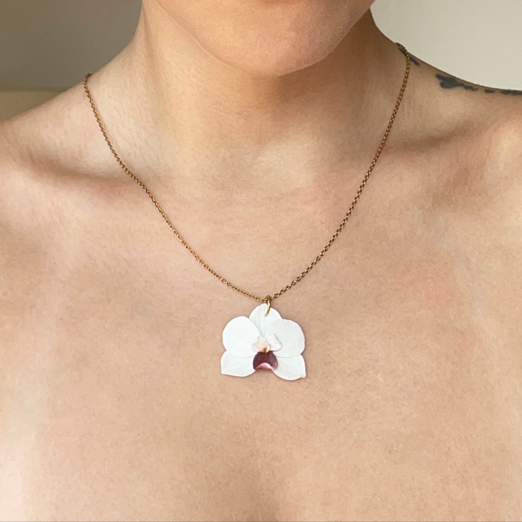 Girocollo MIDI ORCHIDEA, DEGRADè BORDEAUX (golden edition) con sfumatura bordeaux, in argilla polimerica e chiusura con catena dorata in acciaio inox 316