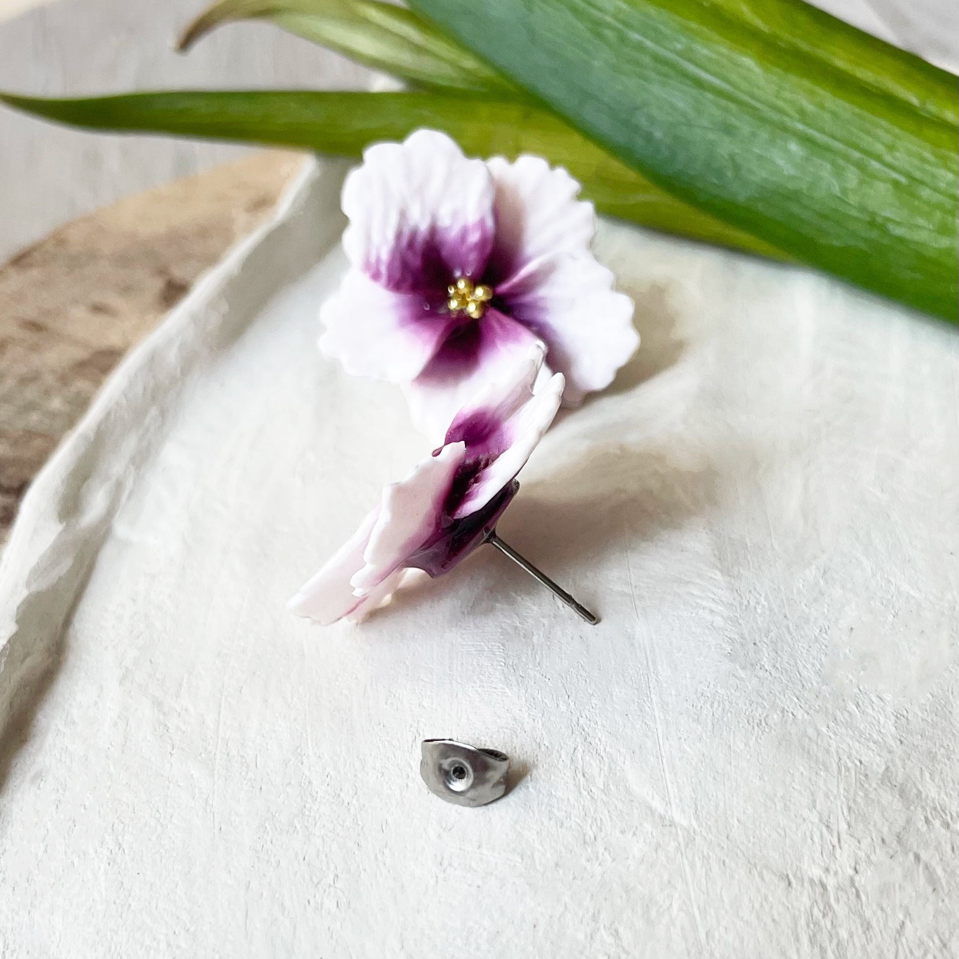 Coppia orecchini FIORE DI MULAN, PETIT - Vinaccio, in argilla polimerica e punti luce argentati, componenti in acciaio inossidabile 316, e chiusura a lobo con farfallina