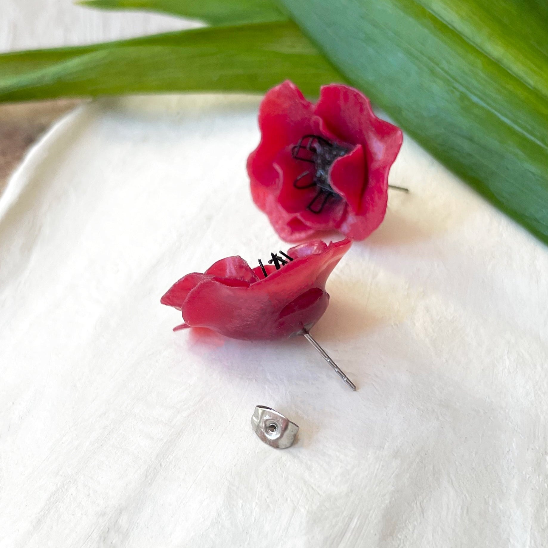 Coppia orecchini MIDI POPPY, Rosso, in argilla polimerica SEMITRASPARENTE e componenti in acciaio inossidabile 316, a lobo con chiusura a farfallina